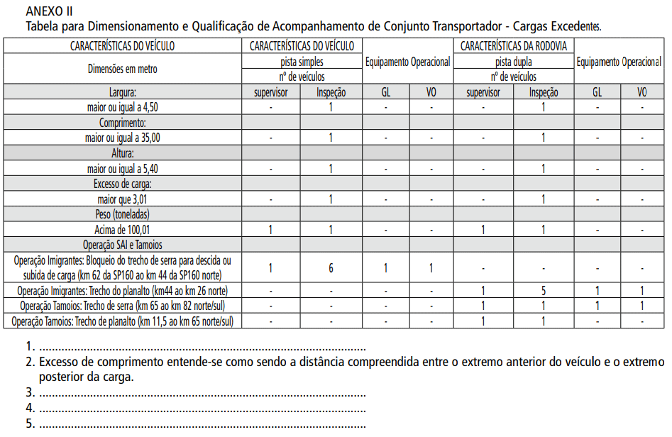 De acordo com a Portaria ARTESP Nº 87/2022, que alterou as Portaria ARTESP Nº 82/2021 e Portaria ARTESP 46/16, os limites, a partir dos quais é obrigatório o ACOMPANHAMENTO DA TRAVESSIA POR CONCESSIONÁRIAS DE RODOVIAS NO ESTADO DE SÃO PAULO, são: