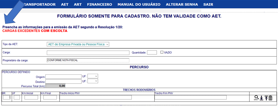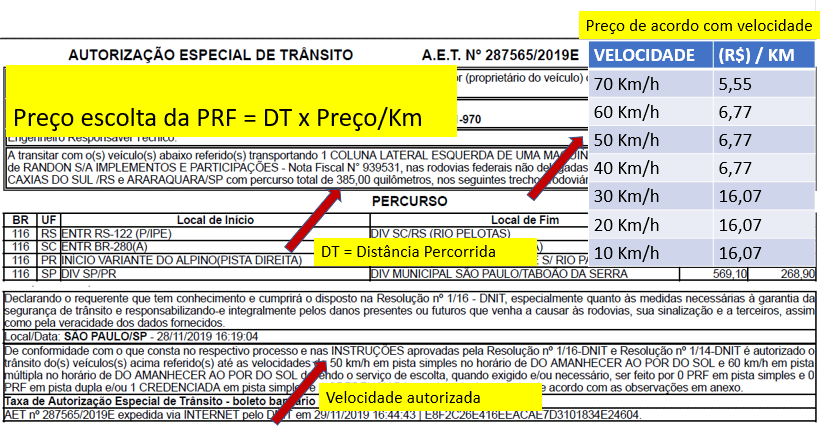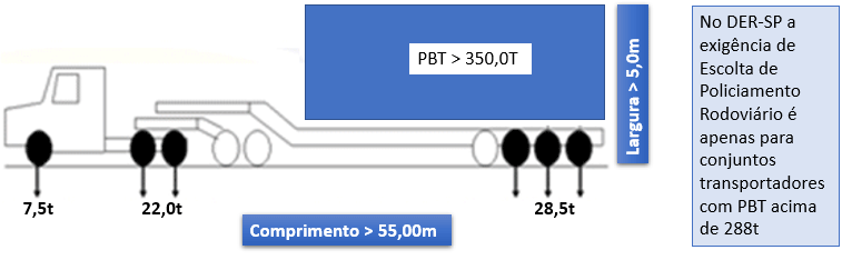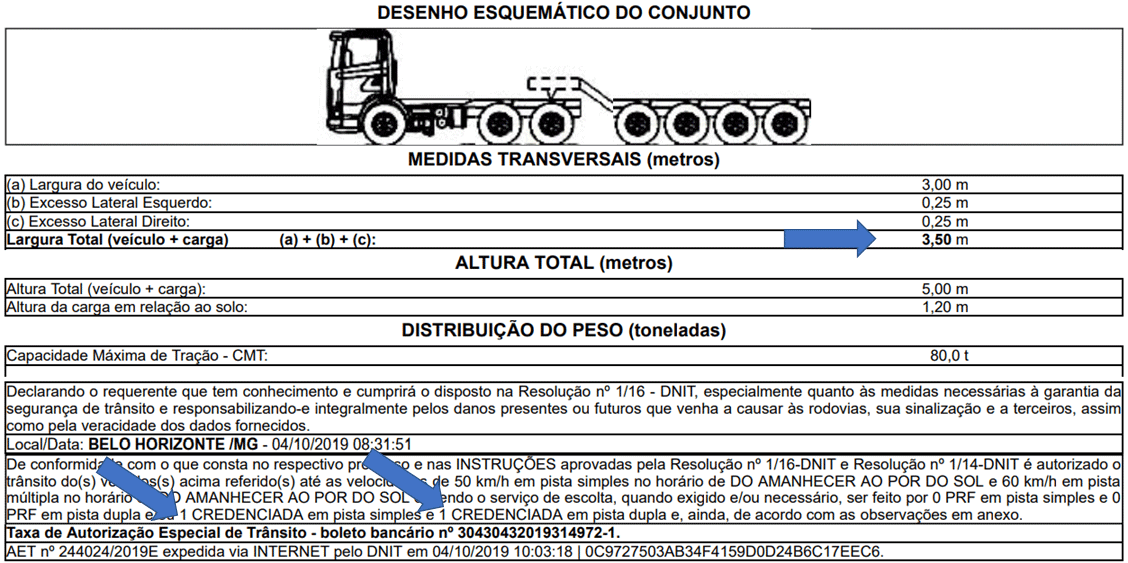 É a AET exigida para conjuntos transportadores com largura, acima de 5,0m, comprimento, acima de 55,0m e PBT acima de 350,0t