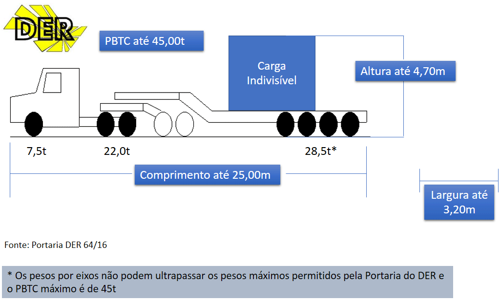 d) Altura: até 4,70 m e) Peso Bruto Total Combinado: PBTC 45,00 tf