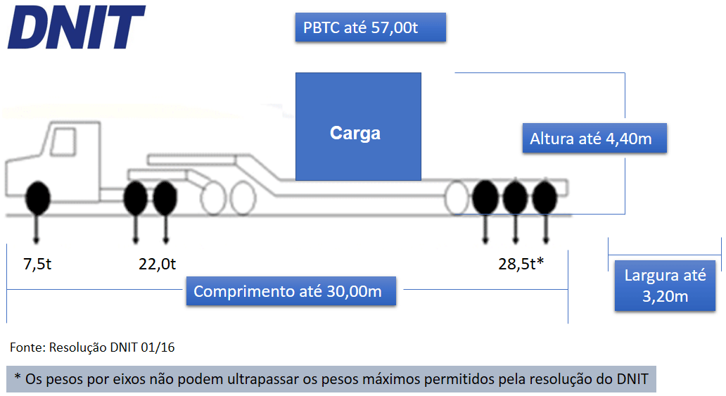 IV - Peso Bruto Total Combinado - PBTC: 57,0 t (cinquenta e sete toneladas).