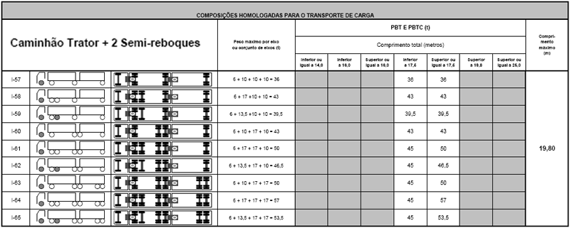 Início / Conteúdo Técnico / Especificação do veículo / Anexos da Portaria 63/2009 do Denatran Especificação do veículo Anexos da Portaria 63/2009 do Denatran Atualizado em 27/12/2025 Composições homologadas para o transporte de carga Composições que necessitam de Autorização Especial de Trânsito - AET Voltar para Especificação do veículo