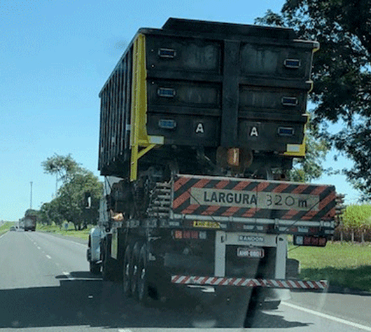 Mas será que é seguro carregar a carga acima, por exemplo, com 3,70 metros de altura, em cima de um caminhão, ou de uma carreta convencional, e sair rodando por aí com altura total de 5,20m?