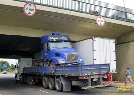 Ainda mais, sabendo-se que o gabarito vertical de boa parte das nossas pontes e viadutos não passa de 4,60 m e principalmente se considerarmos que sobre uma prancha carrega tudo a altura do conjunto transportador (veículo + carga) não passaria de 4,70 m, podendo chegar em uma lagartixa a menos de 4,50m?