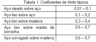 Alguns valores do coeficiente de atrito estão na Tabela 1.