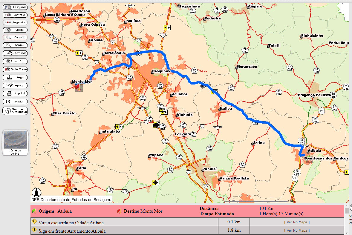1 - Acesse a ferramenta WEBROTAS (http://200.144.30.104/website/webrota/viewer.htm) e informe cidade de origem e destino: