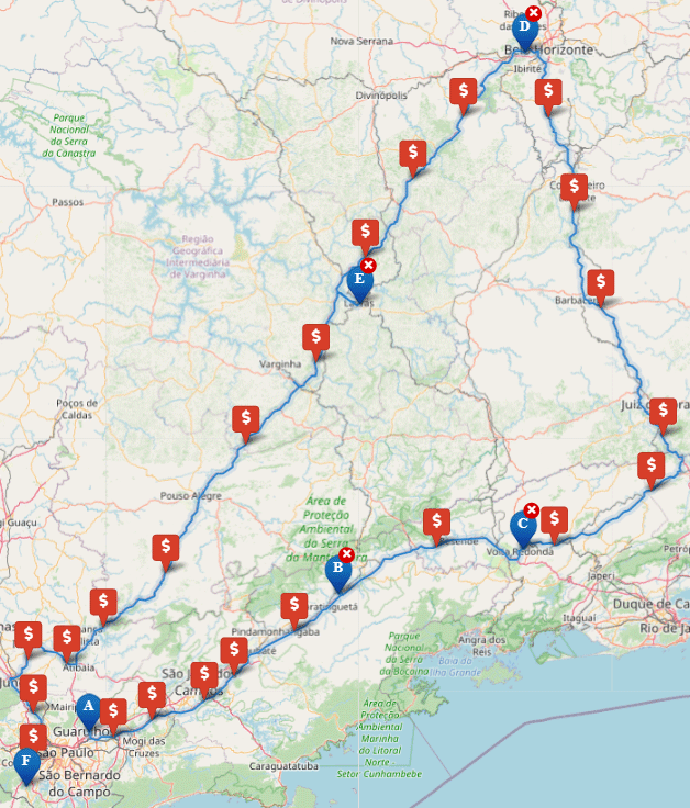 Passo 1 - Mapeamento da rota e identificação das rodovias e trechos de rodovias