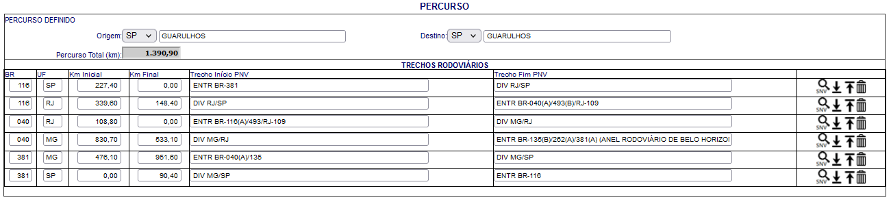 4- Repita o processo para todas as rodovias e entre com essas informações no AET digital: