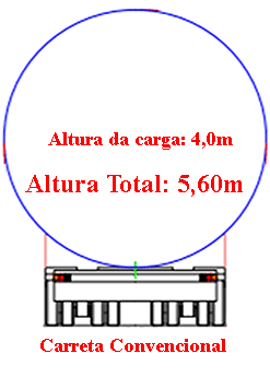 a) comece escolhendo o veículo que resulte em menor PBTC e dimensões totais do Conjunto Transportador, em especial, com relação à altura total e ao comprimento total. Veja nas ilustrações, abaixo, como a escolha do veículo interfere na altura final do conjunto transportador e mais à frente nos requisitos para a obtenção de AET's e execução do transporte: