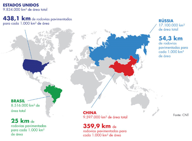 1. Por causa da baixa densidade da malha rodoviária brasileira, vide ilustração abaixo: