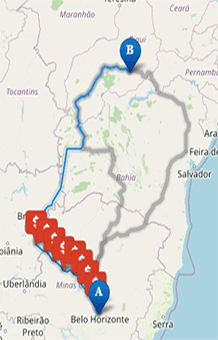 j) no caso da existência de rotas alternativas, escolha aquela que implique na menor quantidade de obtenção de AET's, no relacionamento com a menor quantidade de órgãos e concessionárias. Clique nas figuras abaixo e saiba por quê: