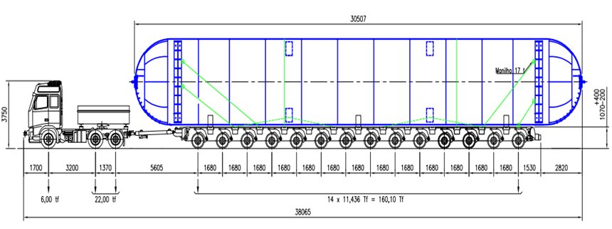 e) Normalmente a principal preocupação é com a altura do conjunto transportador, com as limitações de gabarito vertical das rodovias, em especial em trechos urbanos