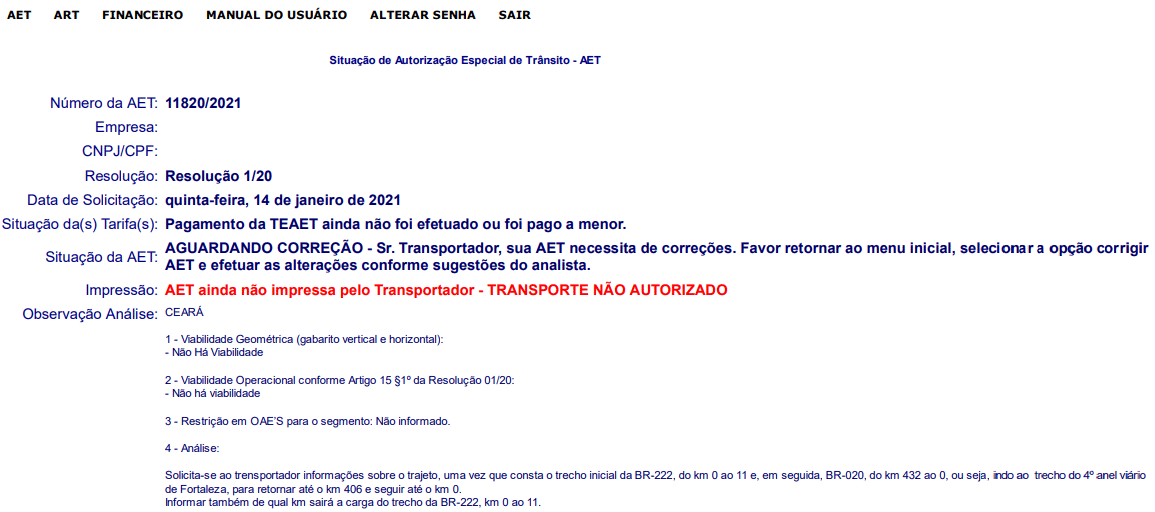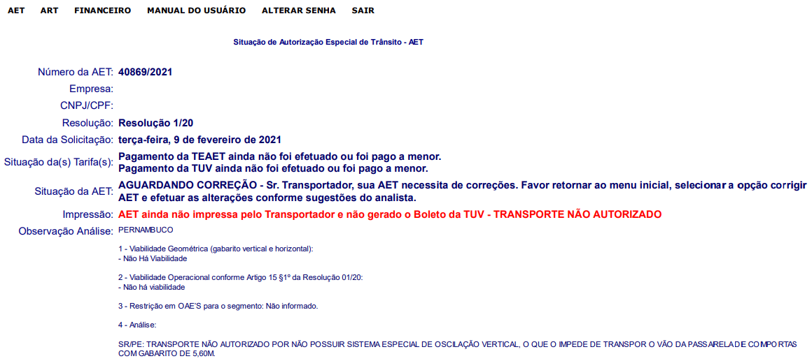 8- Lembre-se que quanto mais órgãos com jurisidição sobre o percurso, maior a quantidade de AET's;