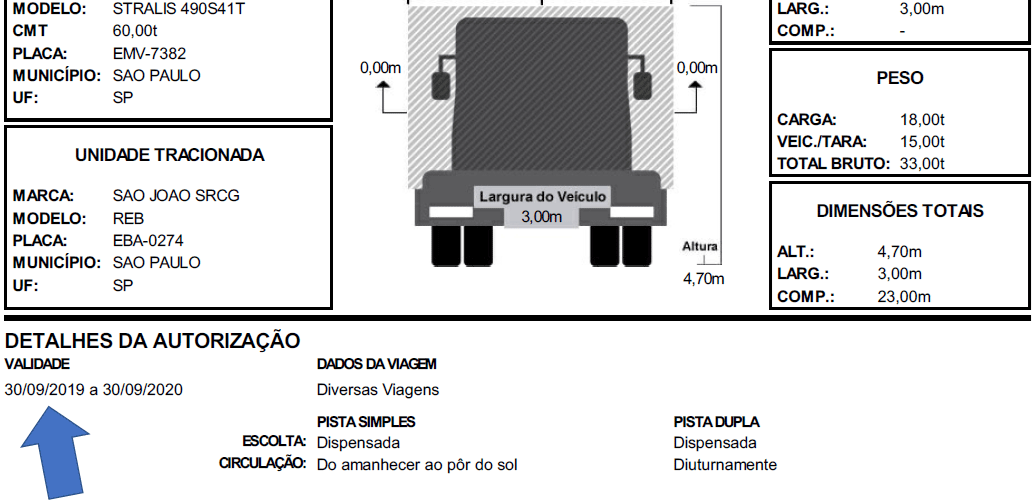 Para trânsito VAZIO OU CARREGADO com carga indivisível em que as dimensões finais do conjunto transportador se enquadrem nas condições acima.