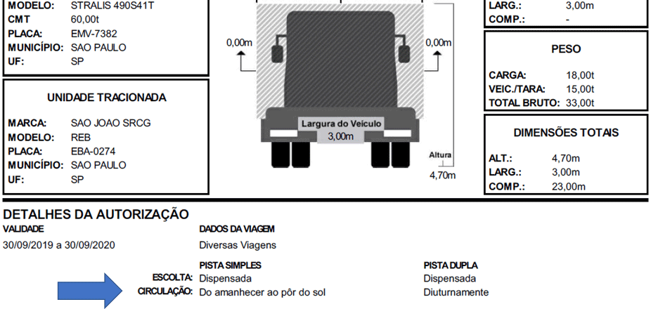 - Horários de Trânsito do AMANHECER AO POR DO SOL em pistas simples e 24 horas por dia em rodovias de pistas múltiplas.