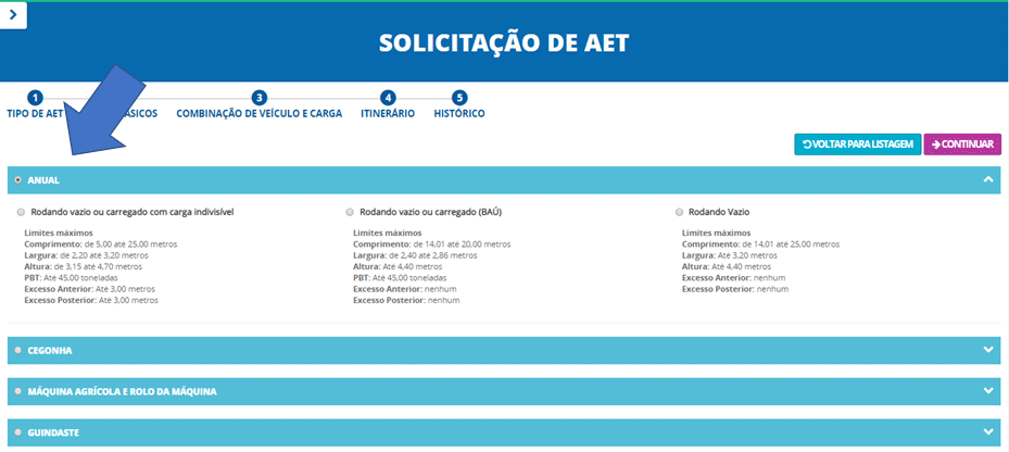 Como é o requerimento de uma AET com validade anual no DER/SP