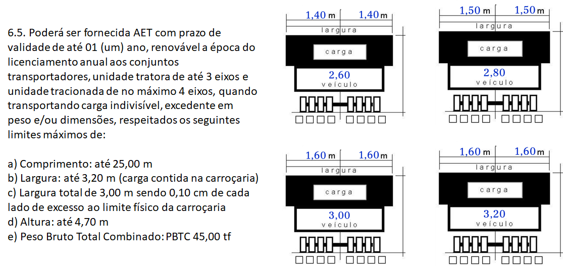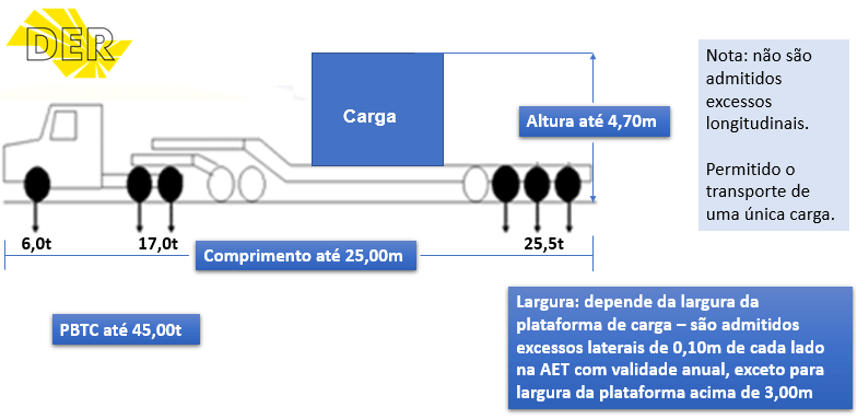 É a AET concedida para conjuntos transportadores com até 45 t, de PBTC; com até 25 m de comprimento; com até 3,20 m, de largura e com até 4,70 m, de altura.