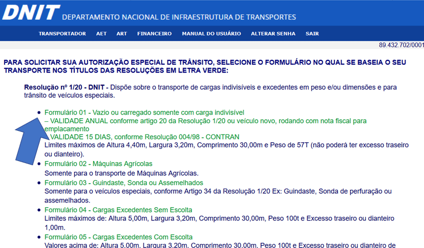 Para trânsito VAZIO OU CARREGADO e transporte de carga indivisível em que as dimensões finais do conjunto transportador se enquadrem nas condições acima.