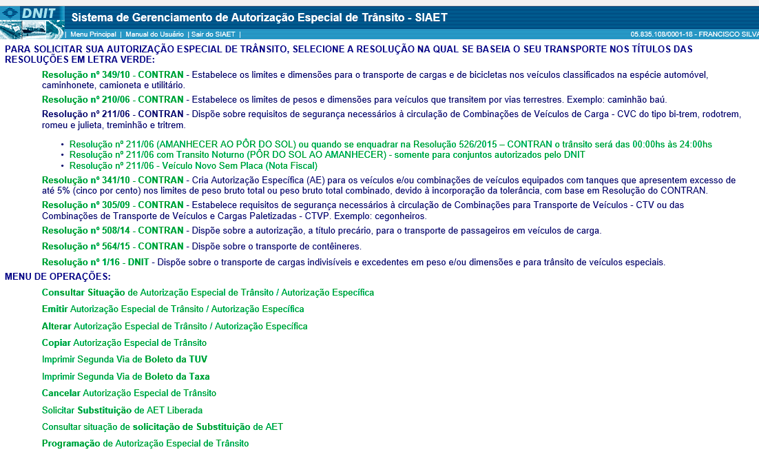 Para requerer uma AET permanente, ou seja, uma AET com validade anual no DNIT confira a sequência de procedimentos, abaixo: