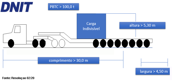 Limites de PBTC e dimensões totais a partir das quais é obrigatória a consulta às concessionárias de rodovias e regionais do DNIT sobre viabilidade de trânsito do conjunto transportador: