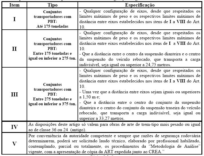 NOTA: o estudo de viabilidade é exigido regularmentemente para PBTC > 175,0t. Dependendo do itinerário, no entanto, a critério do departamento de engenharia, pode ser exigido também para cargas com PBTC acima de 80,0t, em especial se a carga precisar transpor a ponte na divisa do RS/SC e, ainda, para PBTC > 150,0t para demais casos. Por uma questão de segurança, convêm contratar Estudo de Viabilidade para cargas acima de 150,0t.