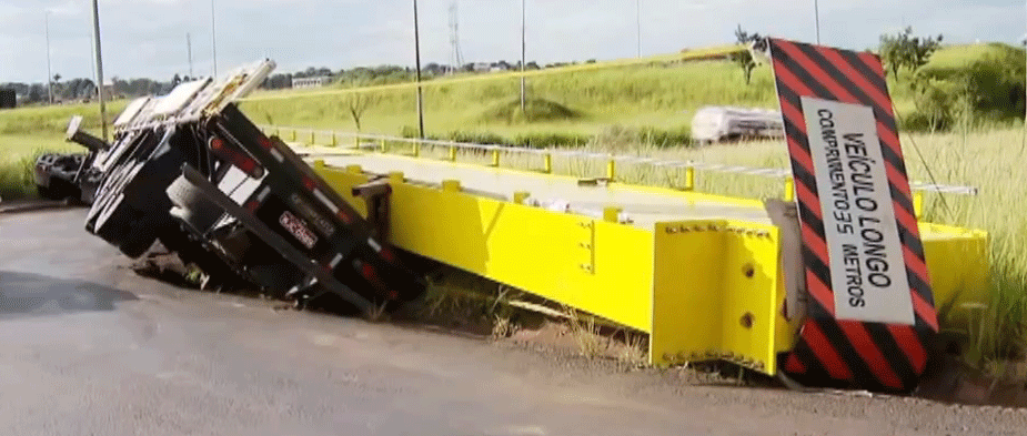 Para garantir a trasitabilidade do conjunto transportador e evitar situações muito comuns nas estradas brasileiras, como pode ser visto a seguir, que é a combinação de geometria inadequada com má conservação da rodovia.