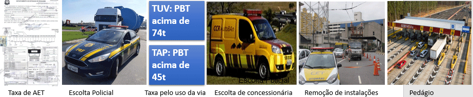 Os custos com taxas e tarifas e requisitos específicos de cada órgão rodoviário