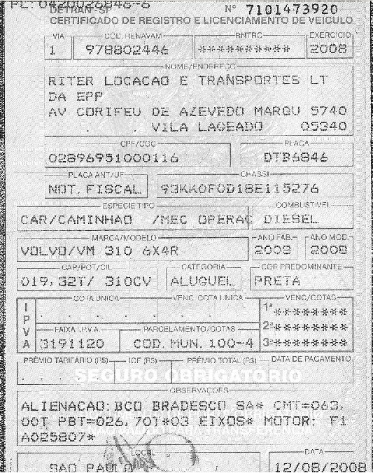 Os valores constantes do CRLV acima têm os seguintes significados:
