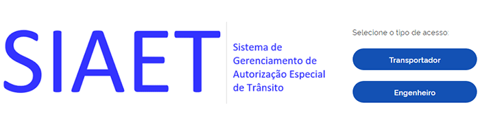 O DNIT foi o primeiro órgão no Brasil a implantar sistema eletrônico permitindo a requisição de AET através da internet. Para requerer uma AET junto ao órgão, que cuida das rodovias federais, é preciso previamente fazer um cadastro no Sistema de Gerenciamento de Autorização Especial de Trânsito - SIAET. Depois de cadastrado e de posse do código de acesso e de uma senha, basta seguir os passos abaixo: