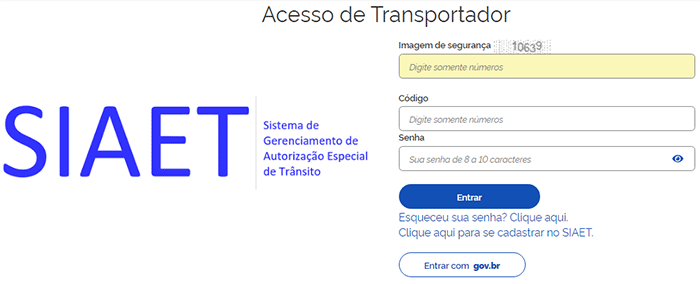 O acesso ao SIAET é feito através do link: www.siaet.gov.br