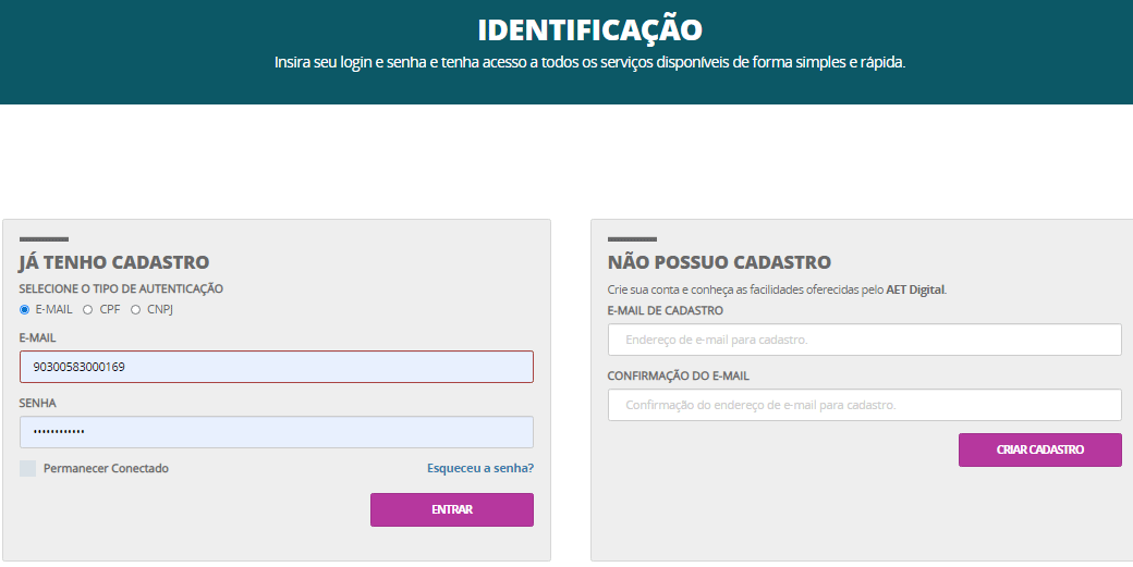 # passo 1 – cadastre sua empresa e obtenha login e senha (http://sider.der.pr.gov.br/portalaet/abrirCadRequerente.action)