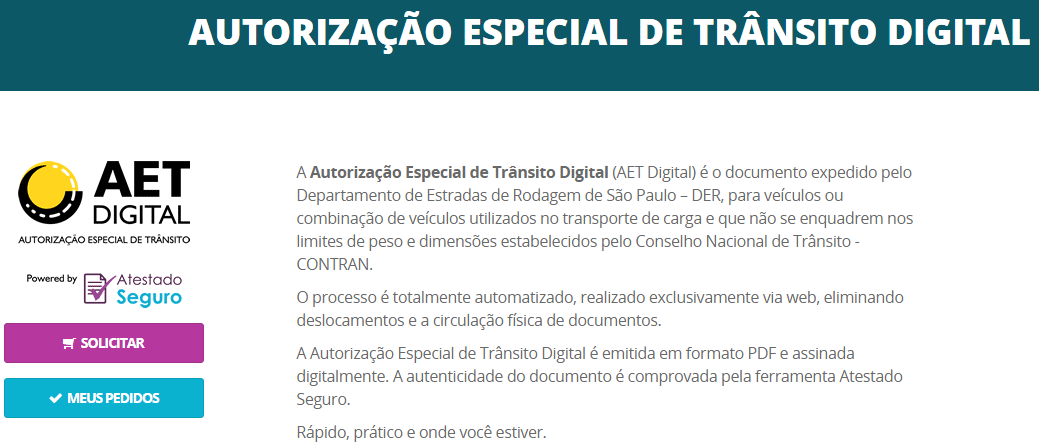 Passo a passo para obtenção de AET para cargas indivisíveis DER-SP