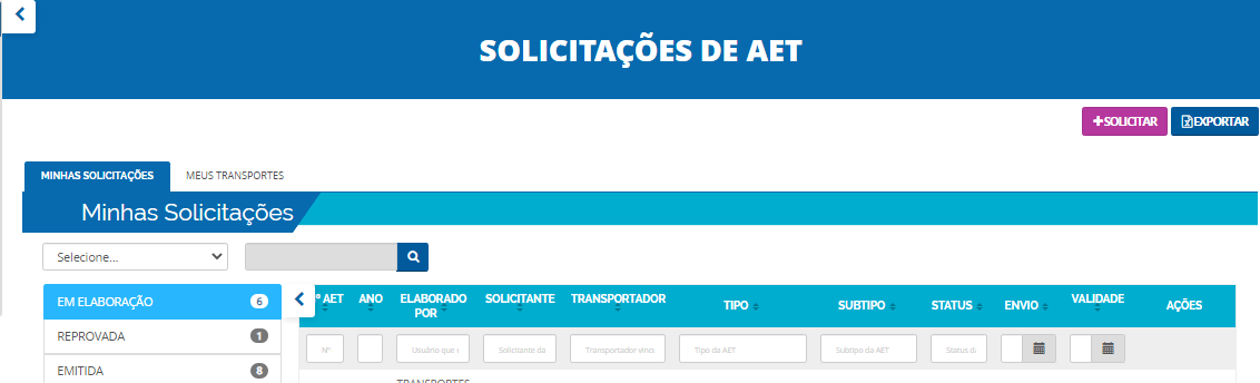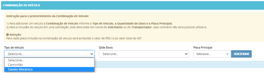 # passo 3 – Vai abrir a tela abaixo. ESCOLHA A OPÇÃO COMPATÍVEL COM SEU TRANSPORTE OU TIPO DE AET