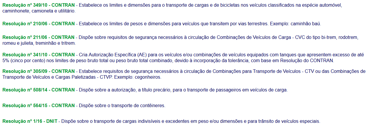 Resposta: o quadro abaixo mostra a relação de legislações e cargas que podem requerer AET no DNIT: