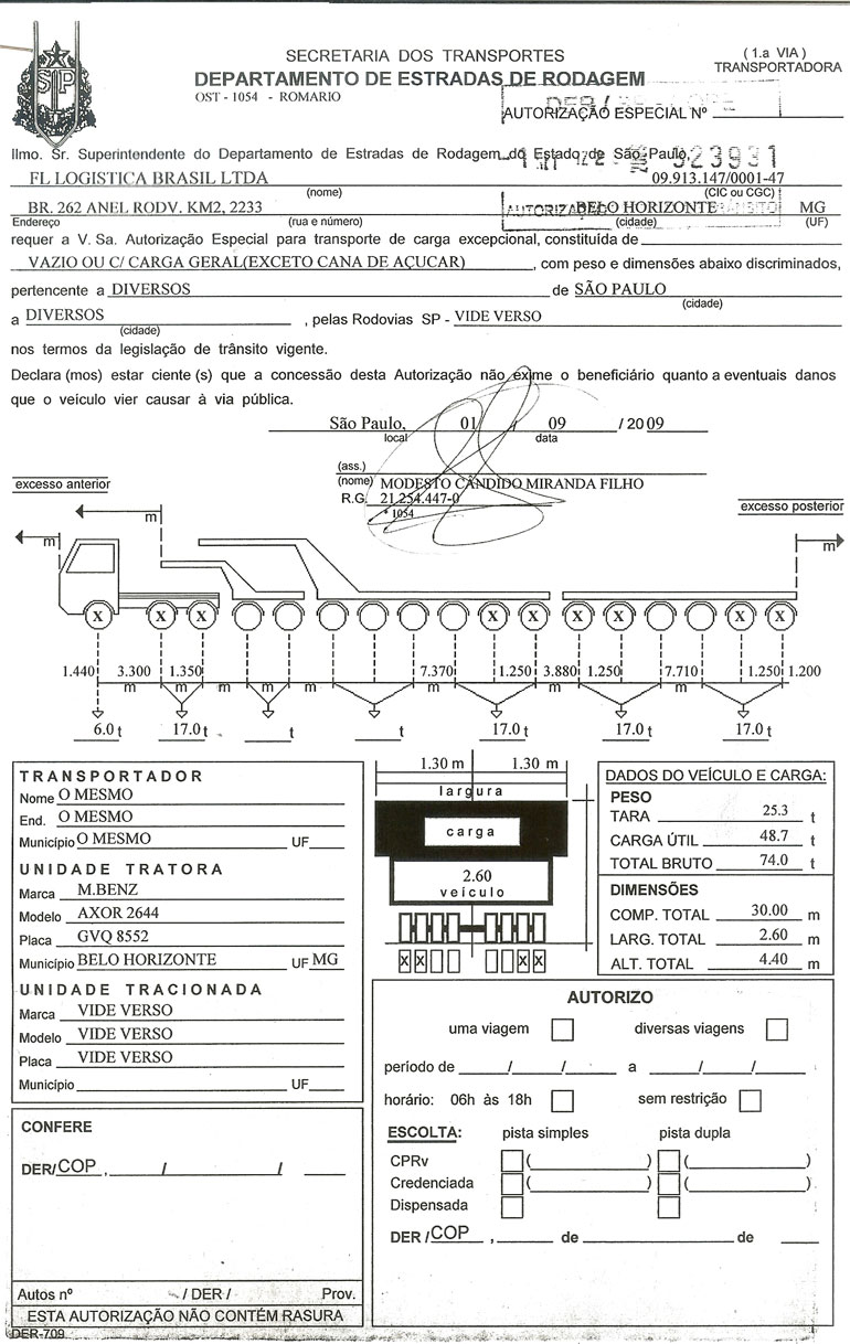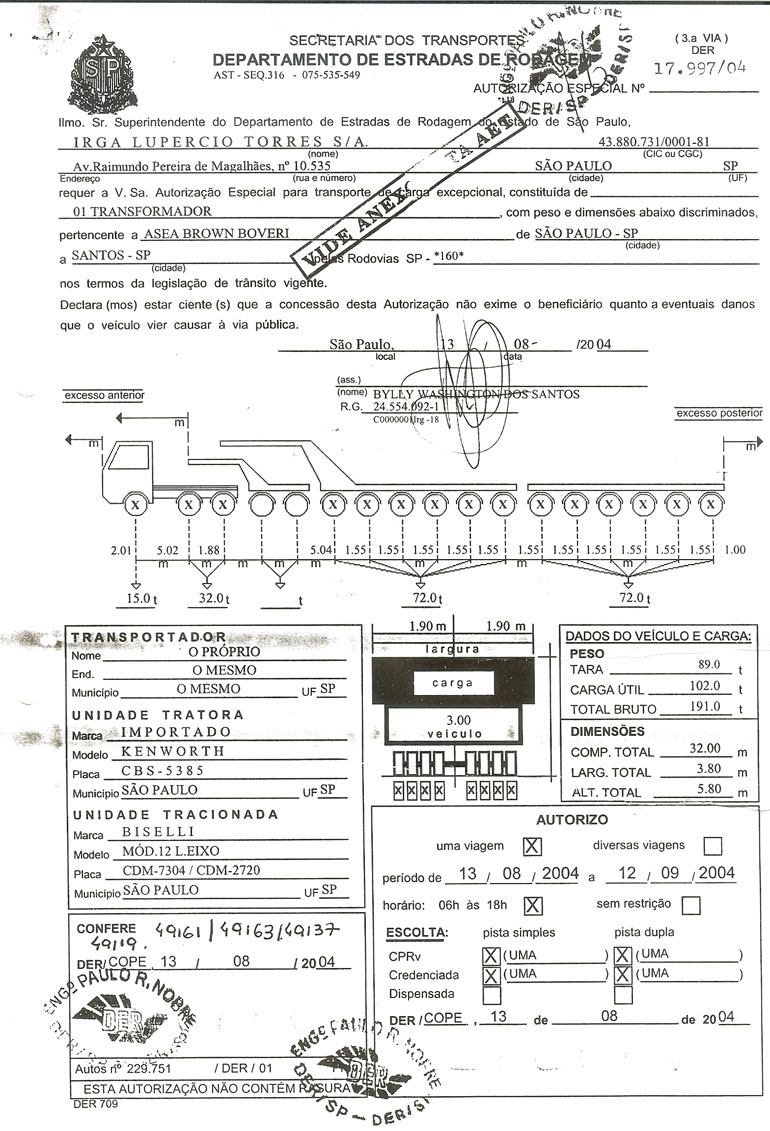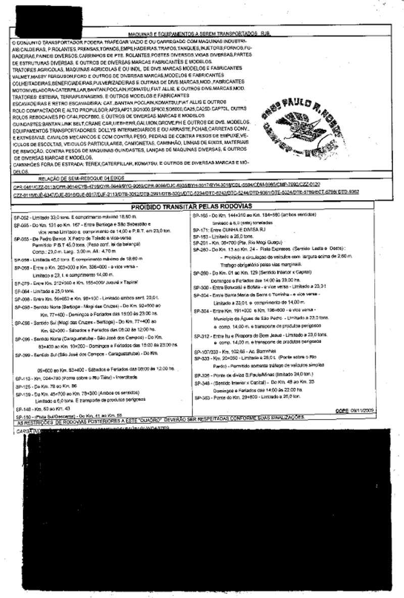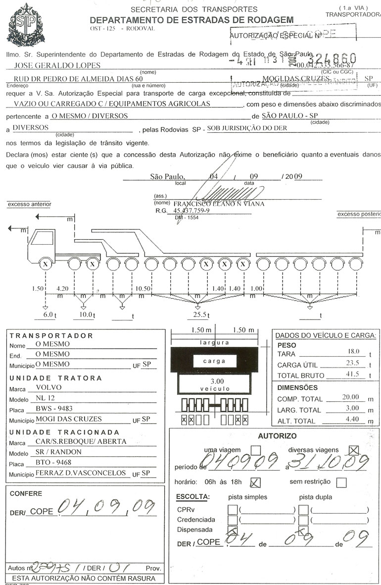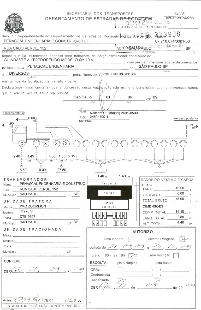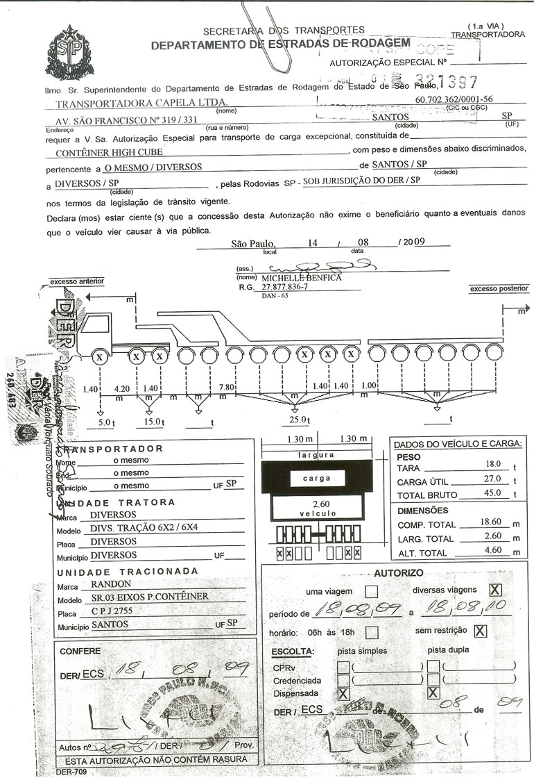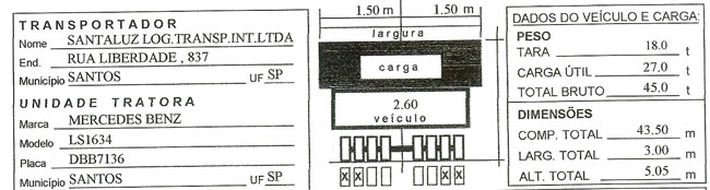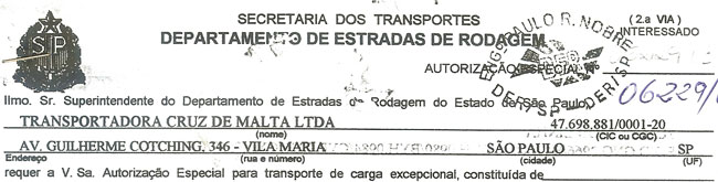 Caso o PBT do conjunto transportador seja superior a 150t, a solicitação/requerimento deve vir acompanhada de croquis do conjunto transportador. Confira exemplo, aqui>>>
