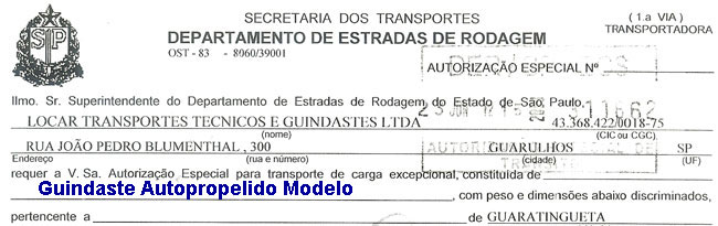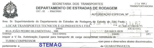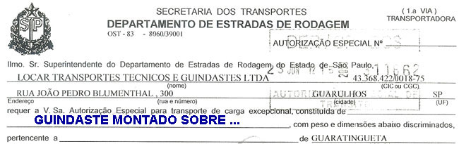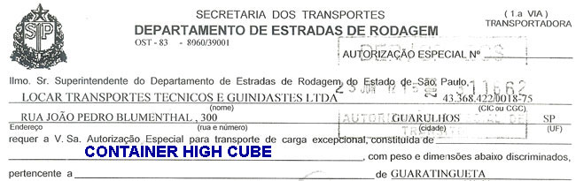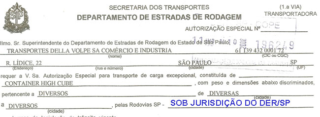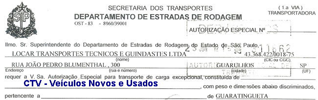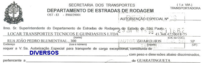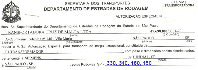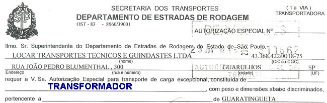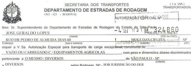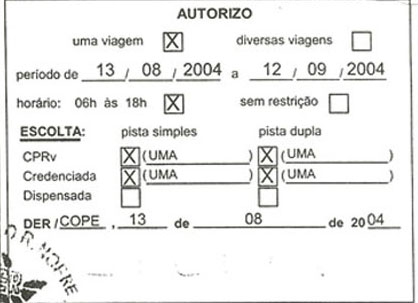 Nota: no caso do transporte ser autorizado para o período noturno, o campo "horário" deve ser deixado sem marcação e inscrito vide-verso, deixando a critério do órgão ou da concessionária a definição do horário.