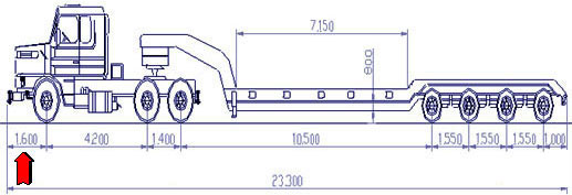Item VI do Art. 1º - Excesso de carga longitudinal dianteiro medido a partir de plano vertical quecontém a linha superior do pára-brisa do veículotrator