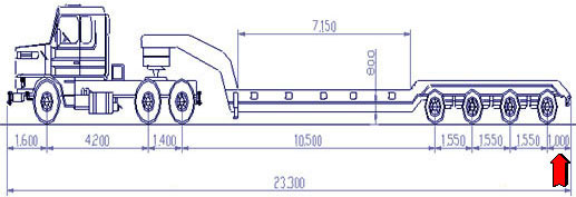 Este campo deve ser preenchido, se constatado, com a distância medida do centro do último eixo do reboque ou semi-reboque até a extremidade do chassis, conforme mostrado no desenho abaixo: