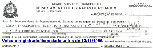 AET para Veículo Registrado/Licenciado antes de13/11/1996