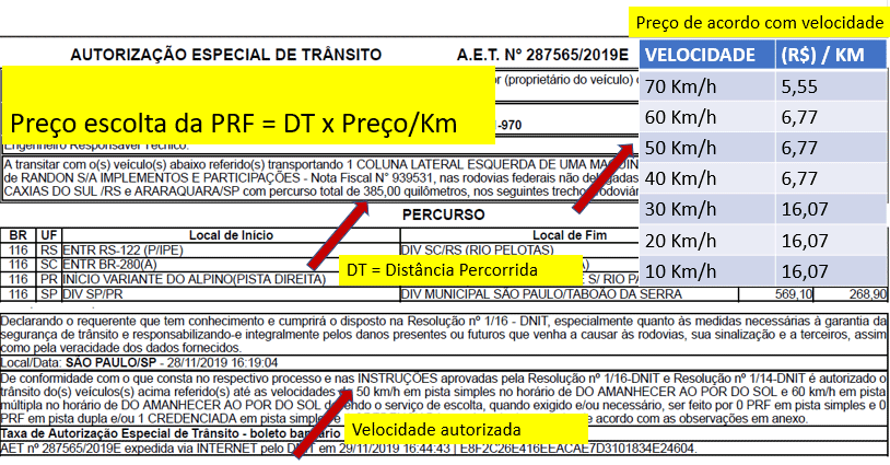 Cálculo da tarifa da Escolta da PRF