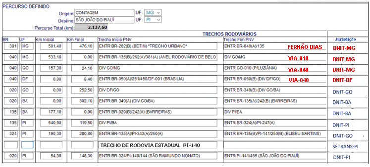 Percurso com base no PNV: confira quantidade de AETs, custos e tempo perdido com consulta à concessionárias e programação de travessia