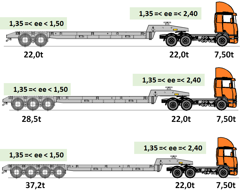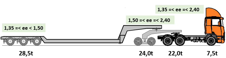 - que os pesos por eixo ou conjunto de eixos sejam menores ou iguais aos pesos máximos permitidos pelo órgão com jurisdição sobre a via