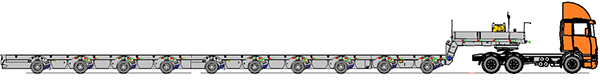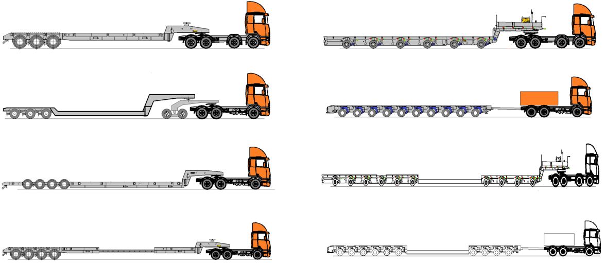 - carreta com suspensão hidráulica (8 pneus por eixo)
